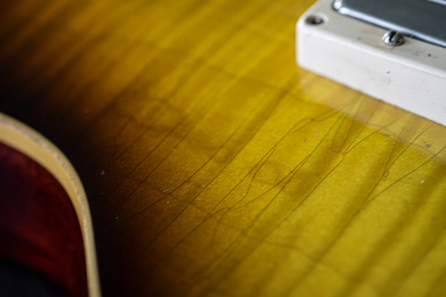 This instrument began life as a ’59 Reissue and now stands apart through a comprehensive makeover featuring period-correct refinements and upgraded vintage-spec components. At its heart are Ballestone PAF pickups built with original NOS screws, producing an authentic midrange bloom and harmonic depth reminiscent of early Gibson humbuckers. The electronics are wired with a RetroSpec 50s harness using premium CTS pots and Luxe Bumblebee capacitors—ensuring warmth, articulation, and the unmistakable dynamic response of a golden-era Les Paul.